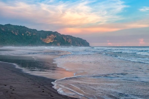 Hamparan Pasir Hitam Vulkanik: Pasir di pantai ini berwarna hitam dengan kilauan khas, yang berbeda dari pasir pantai lain.